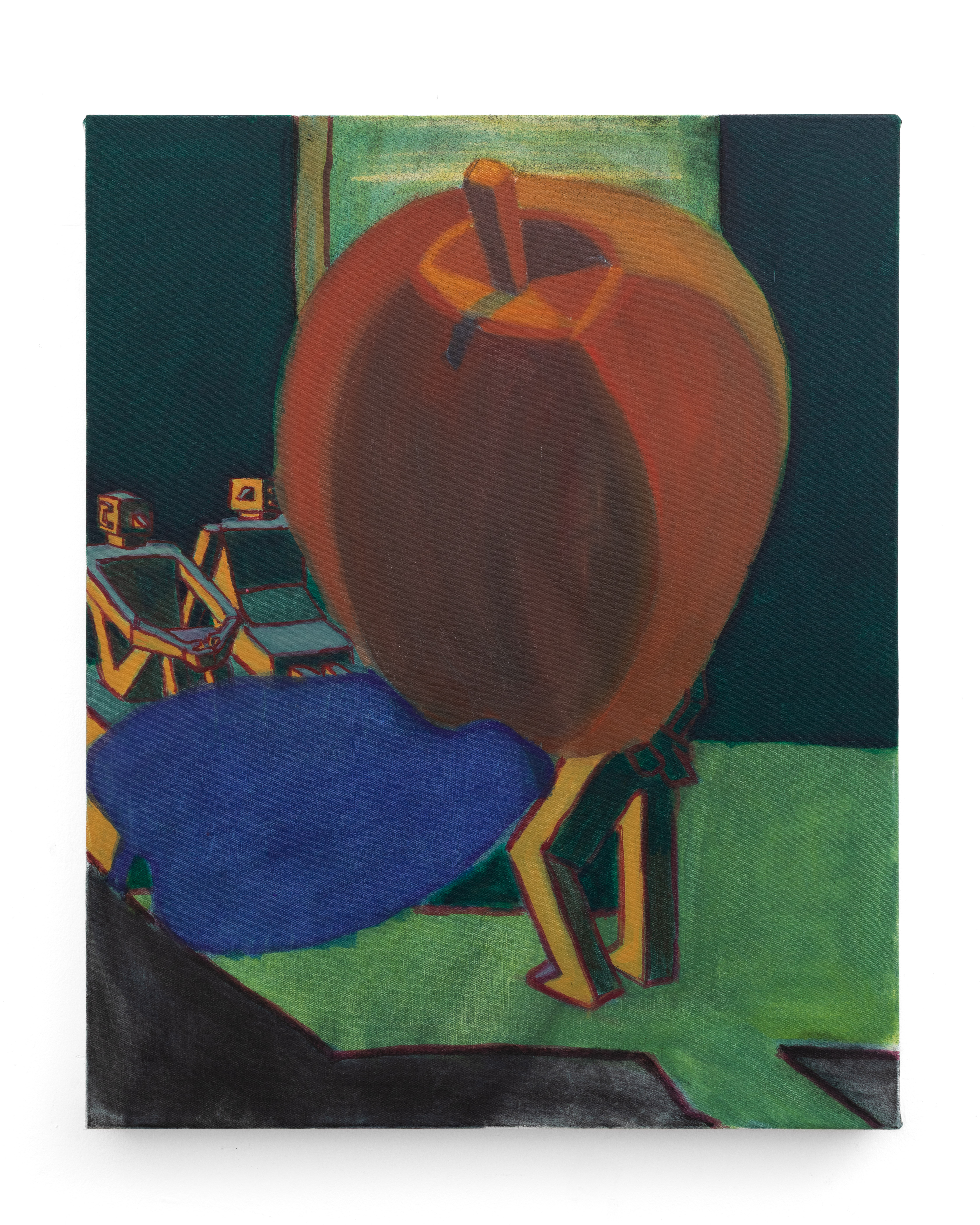 I make paintings in a rectilinear language. In this square world, marionette characters are placed in situations that explore labour, play, and Thatcher’s legacy in London.